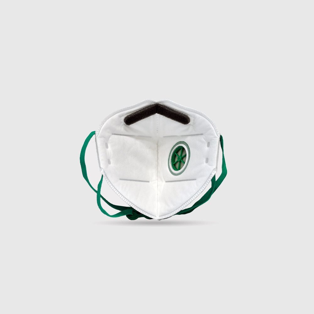 Flat fold high filtration FFP2 dust mask with exhalation valve.